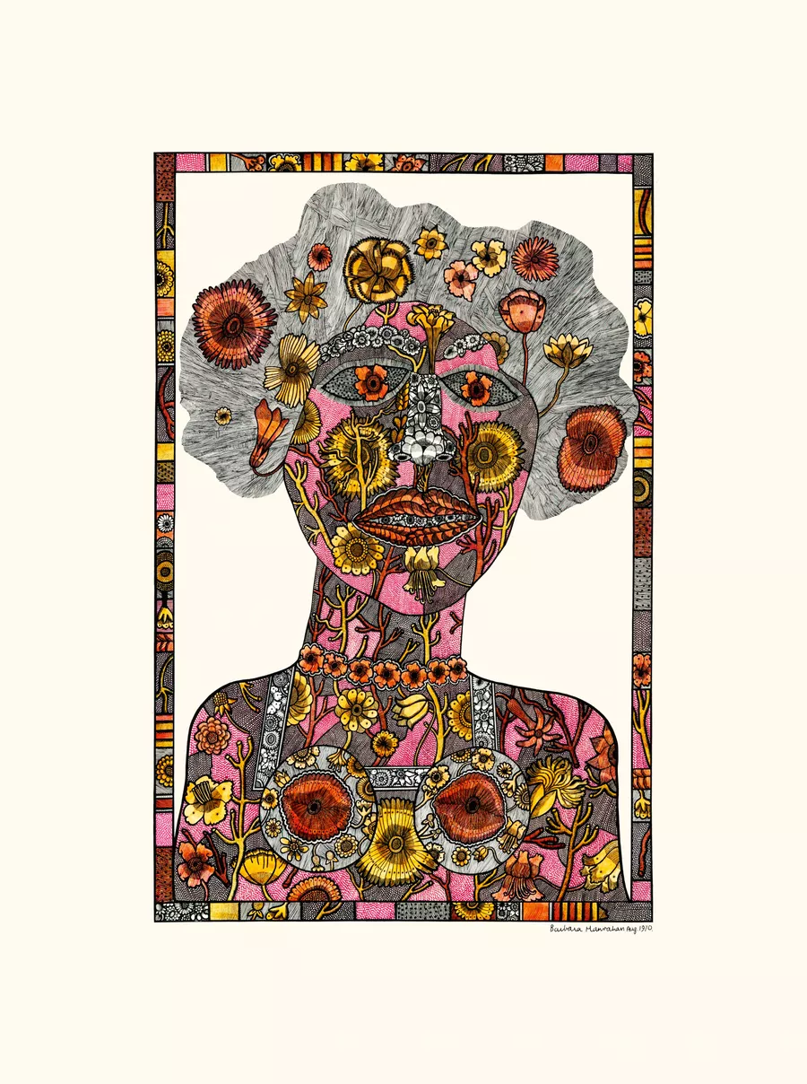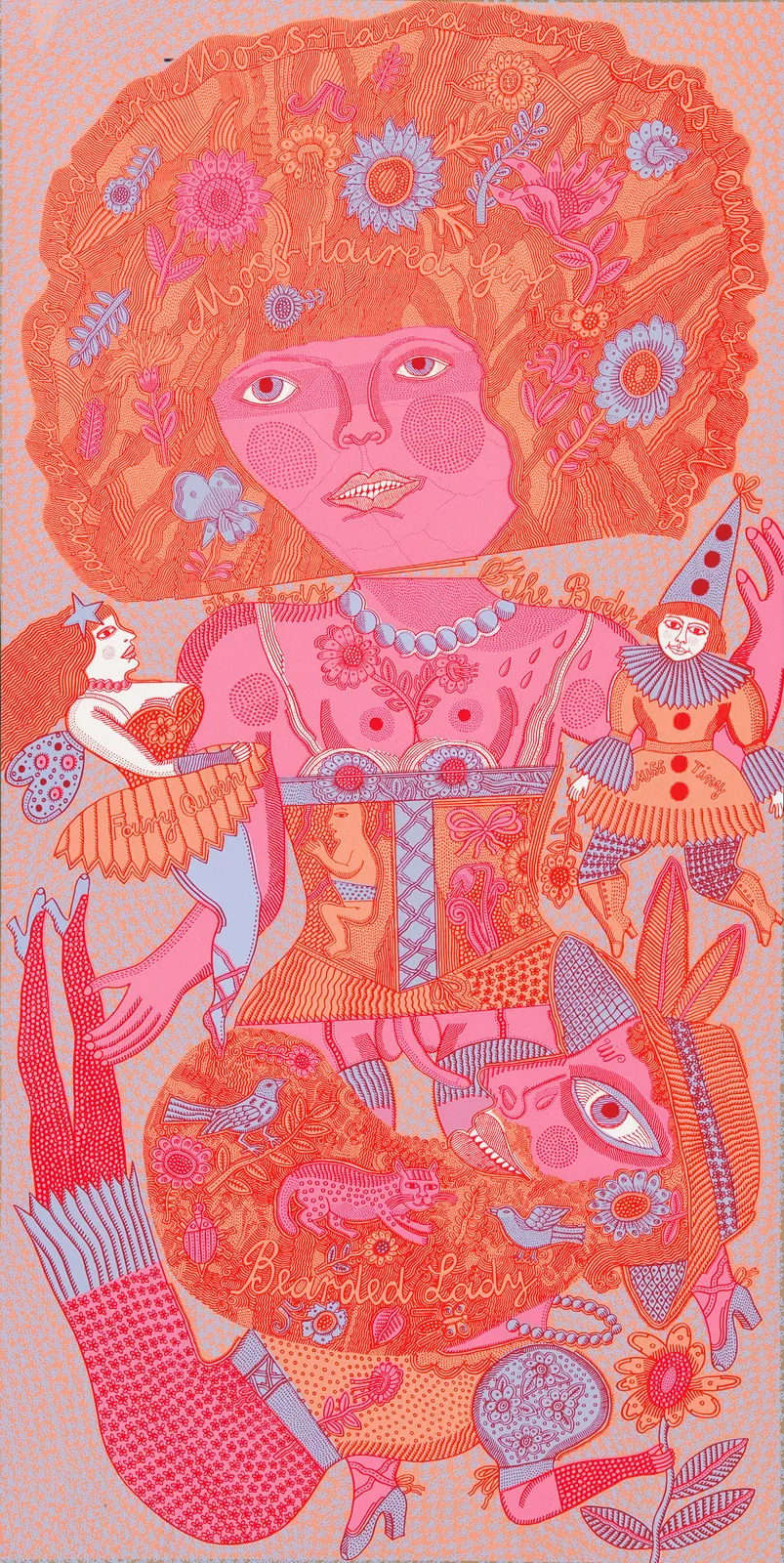 Barbara Hanrahan, born Adelaide 1939, died Adelaide 1991, Moss-haired girl I, 1977, London, colour screenprint on paper, 62.6 x 32.0 cm (image), 76.3 x 51.0 cm (sheet); Gift of Jo Steele 1997, Art Gallery of South Australia, Adelaide, Courtesy estate of the artist.