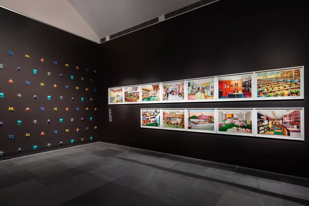 First Jobs, 2008, explores Moffatt’s own experiences of paid employment during her teenage years and early twenties. The autobiographical nature of the series is signalled by the titles of the twelve works, each of which identifies the job and year she was employed. Photoshopping herself into different workplaces, such as a fruit market and hair salon, she creates a nostalgic mood. This is reinforced by the bright colour palette of the inkjet prints, which draw on the conventions of art direction in the advertising campaigns of the1960s and 1970s. The artist notes that the series is a reflection on the kind of labour available to her as a working-class teenager in 1970s Brisbane.