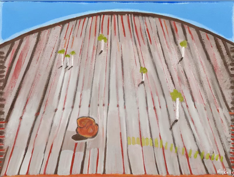 Adelaide-born Nickolls had always wanted to be an artist. He studied at the South Australian School of Art and gained a diploma in art teaching at Western Teachers College in Adelaide, before obtaining a Graduate Diploma in Painting from the Victorian College of the Arts. In a career spanning four decades, his humour and wit were always evident in his paintings, as was his recurring theme of ‘dreamtime to machinetime’ – the clash of modern-day life with ancestral traditions and a life more harmonious with nature.