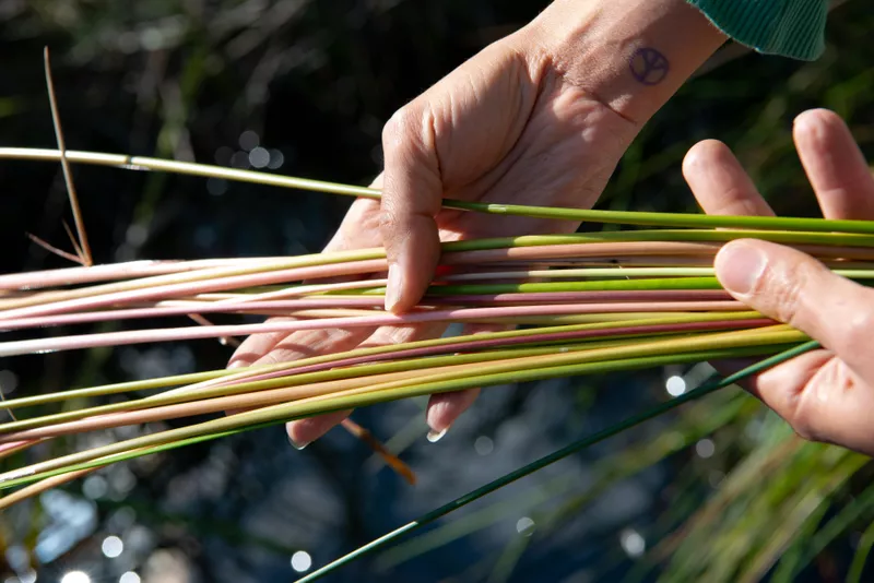 Elisa Jane Carmichael gathering Ungaire, Minjerribah (North Stradbroke Island), Queensland, 2020; photo: Jo Driessens.