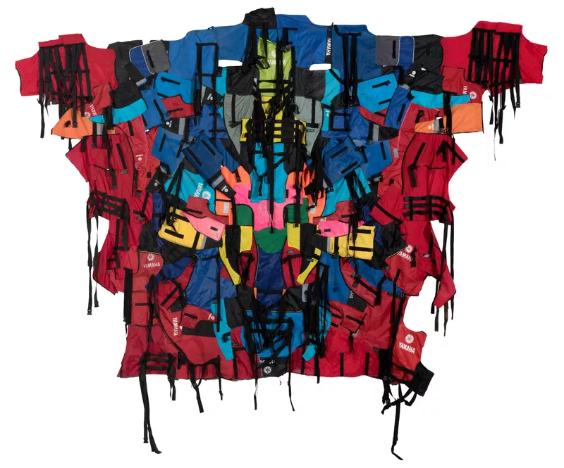 2016thread, eyelets and Syrian refugee life vests, Chios, GreeceAccession no: 20191S1 -