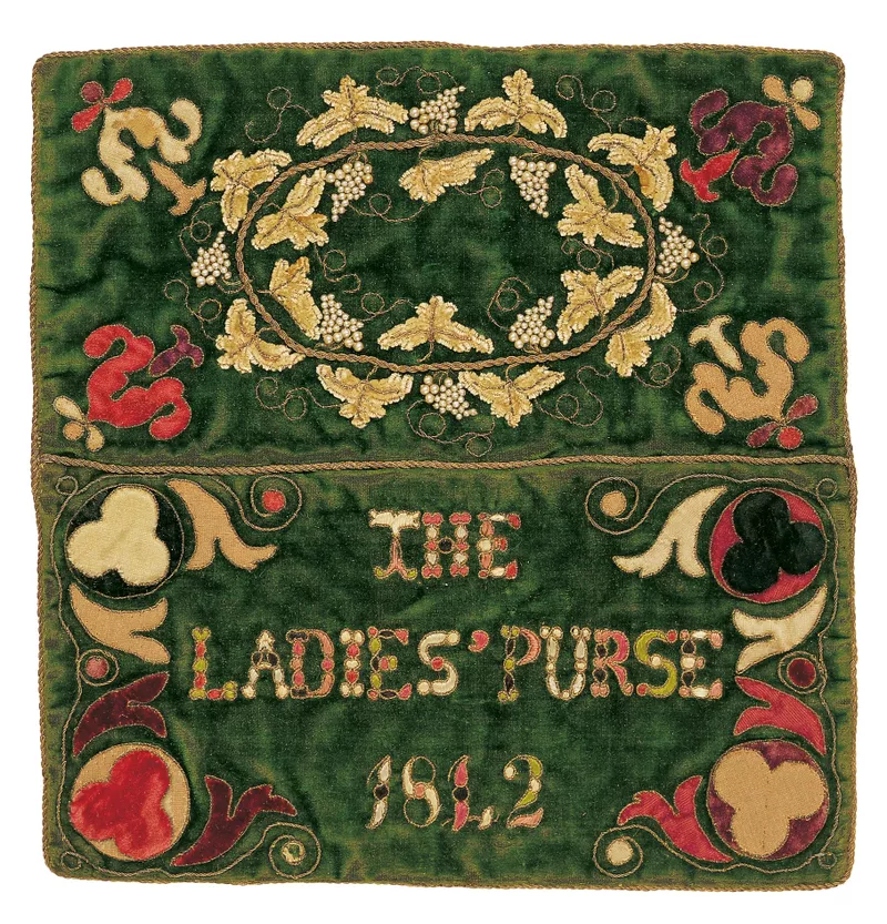 silk, cotton, seed pearls & gold wire embroidered onto velvetAccession no: 954A25A