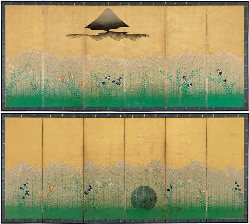 pair of six-panel screens, colour, gold on paperAccession no: 8110A134(a&b)