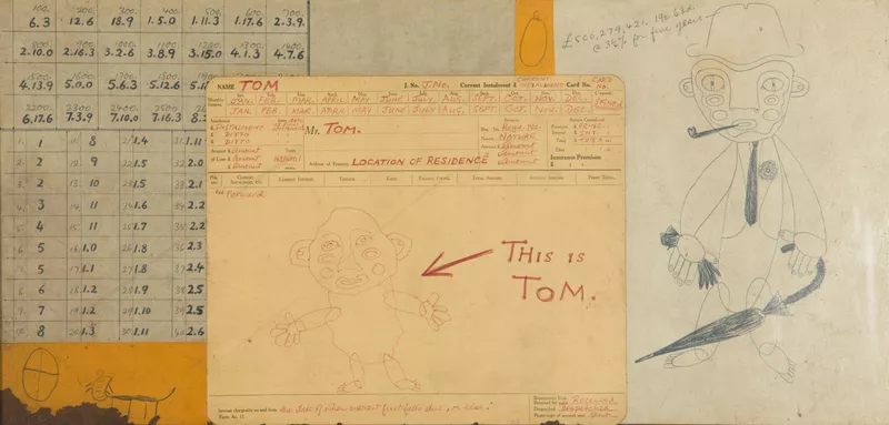 c.1962collage of paper, red & blue ballpoint pen on composition boardAccession no: 20004D2 -
