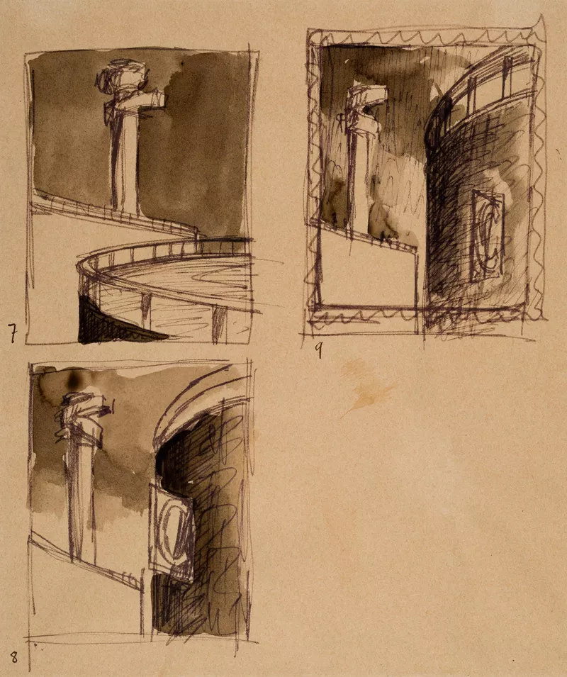 black fibre-tipped pen, brown ink wash on paperAccession no: 704D5