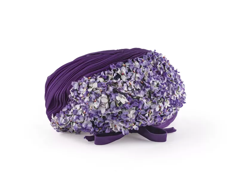 Turban style hat, purple floral