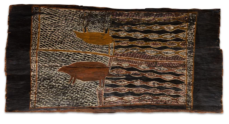 c.1970earth pigments on eucalyptus barkAccession no: 741P72On display, Gallery 5 -