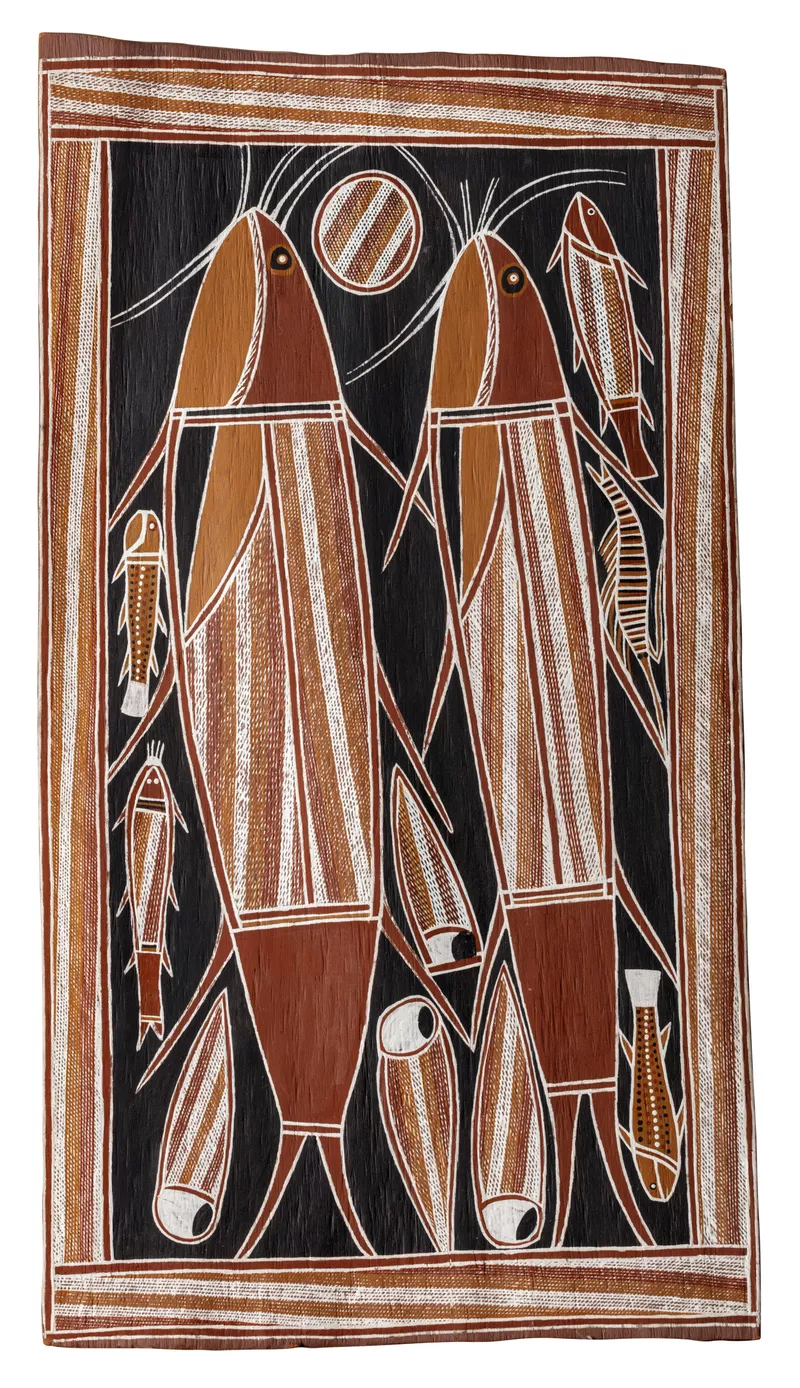pandanus (Pandanus Spiralis), kurrajong (Brachychiton Populneus), and paperbark (Melaleuca Quinquernervia) and earth pigmentsAccession no: 20202S20