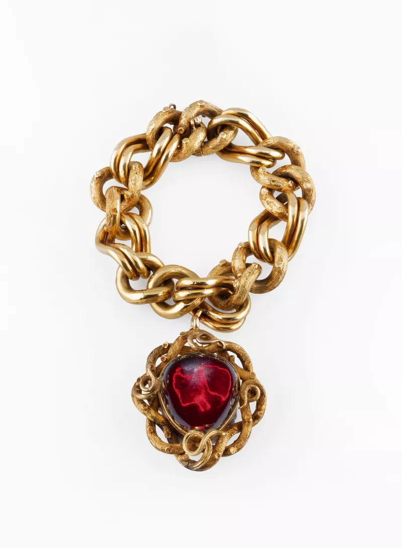 1855; and c.1860gold, garnet, glassAccession no: 20132A20A(a&b) -