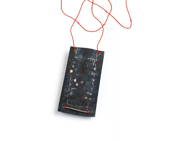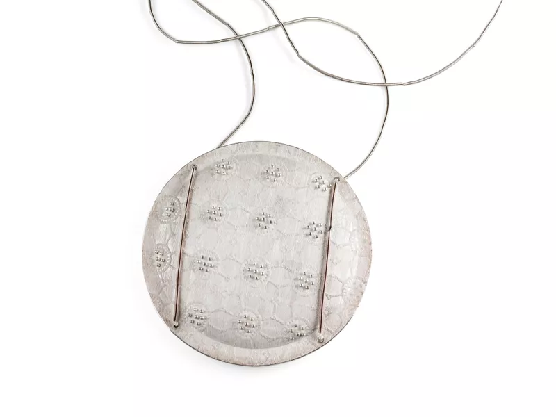 2001mild steel, silver, red silk cordAccession no: 20172A27A -