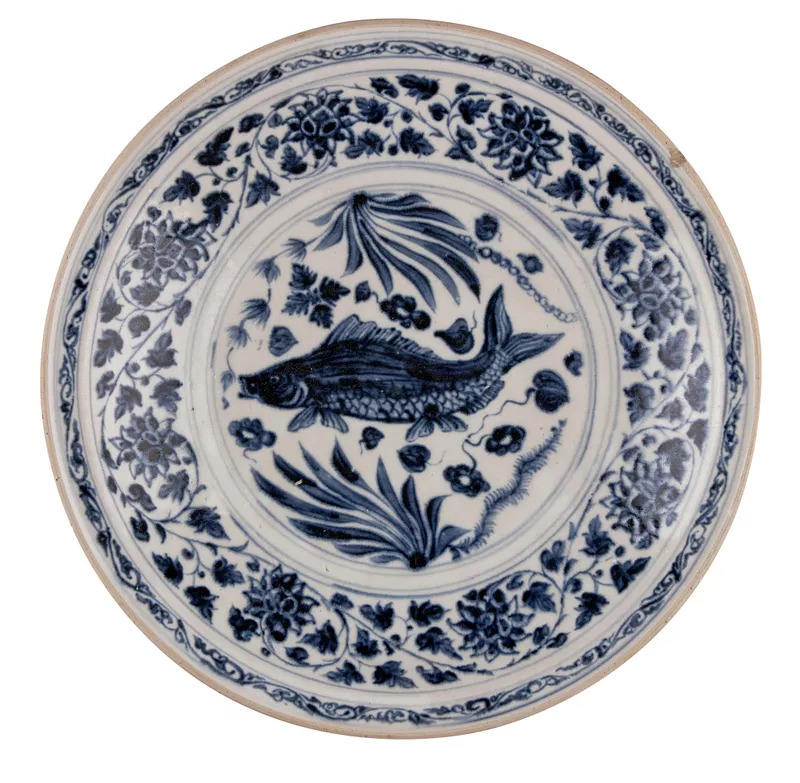 Plate, with fish and waterweed