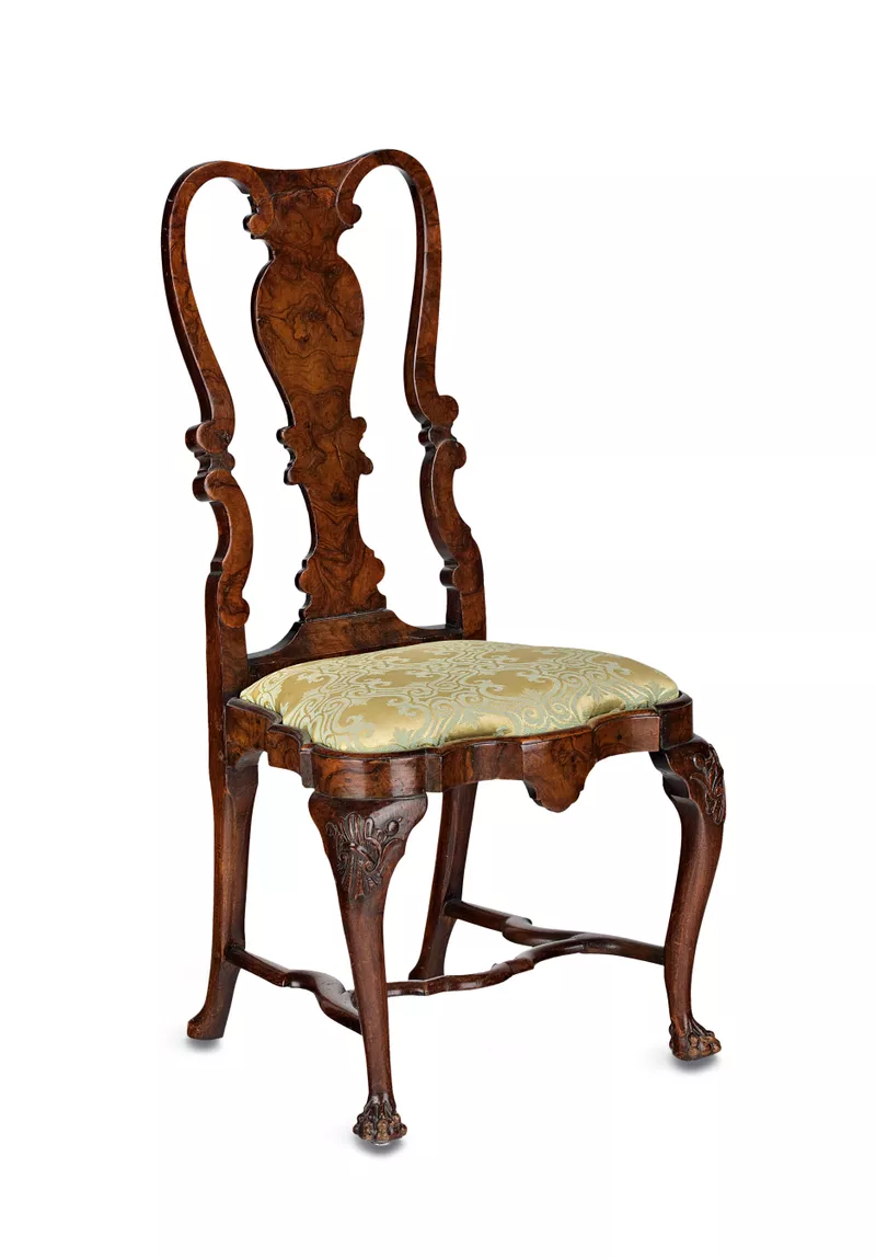 c.1715burr walnut veneer, silk upholsteryAccession no: 833F2(a-f) -