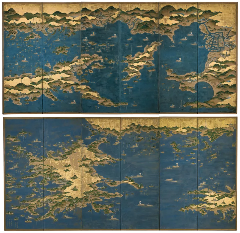 pair of six panel screens, colour and gold on paperAccession no: 20083A13(a&b)