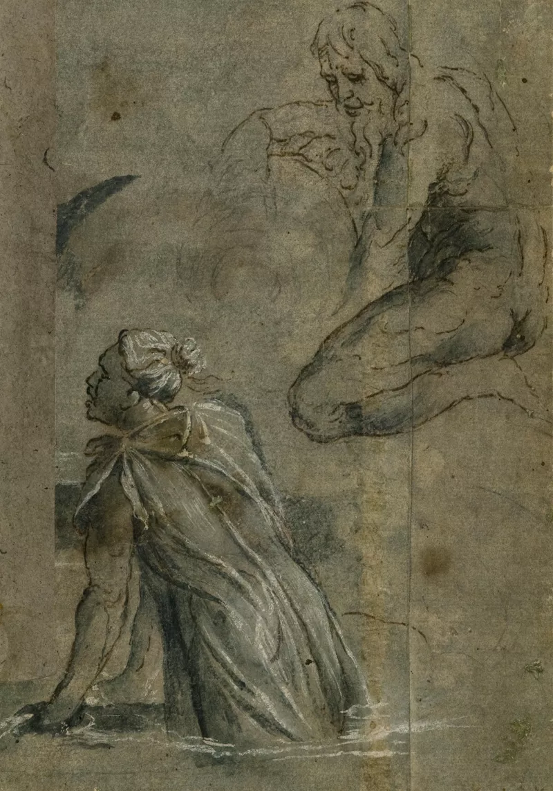 1540s?pen & brown ink, blue ink wash, heightened with white on blue paperAccession no: 654D16 -