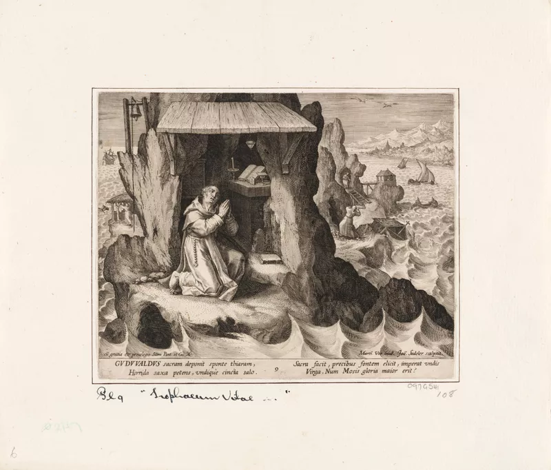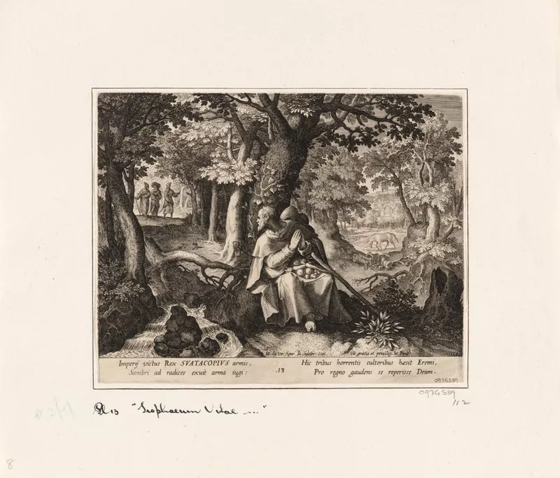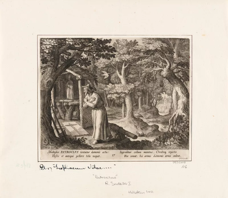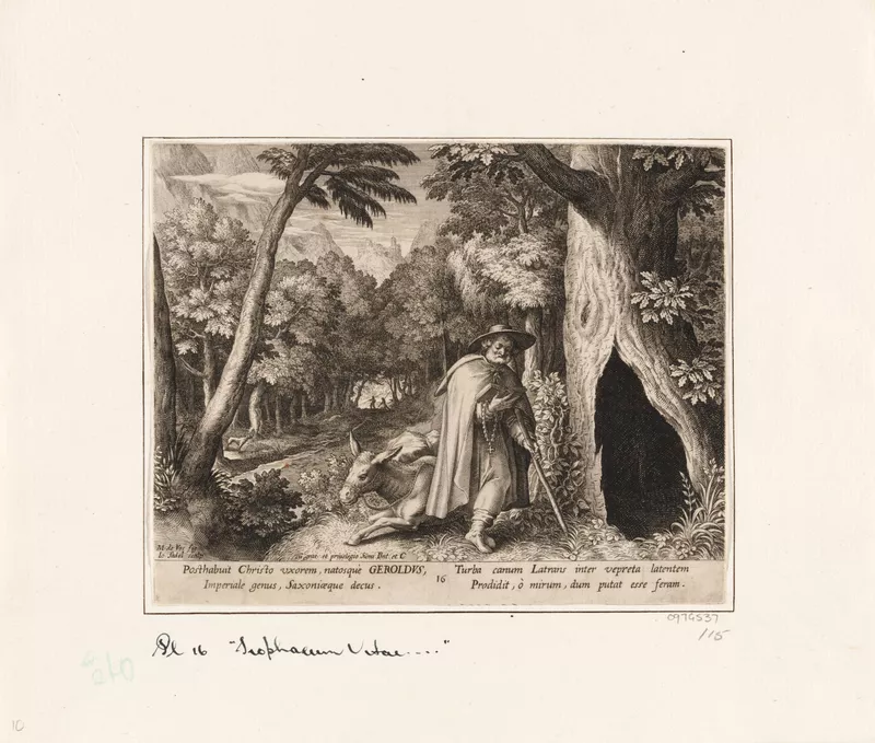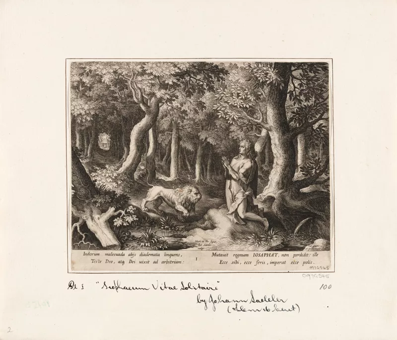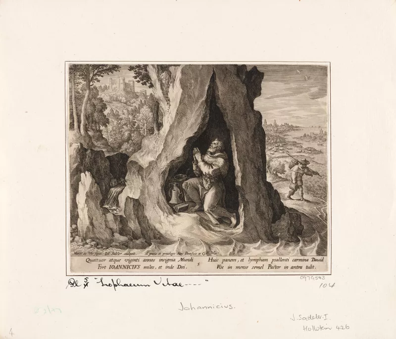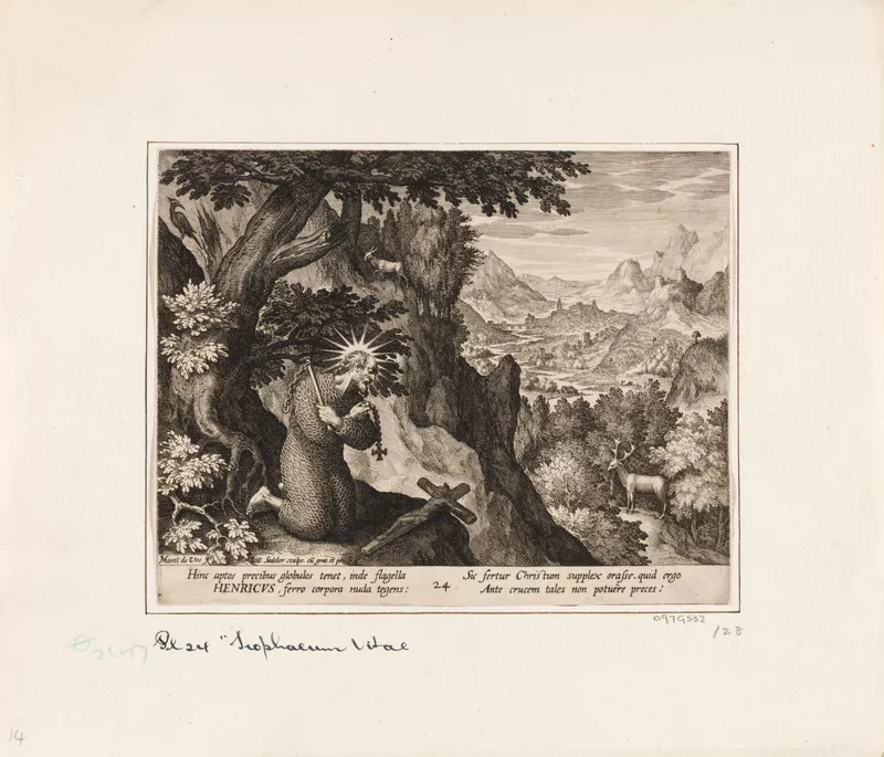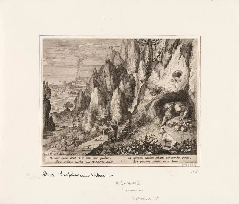 - Signed, engraved in plate, bot. c.l., 'Ioa. Sadeler scalps.".; (on rock) l.r., "M de Vos/ figur". Not dated.