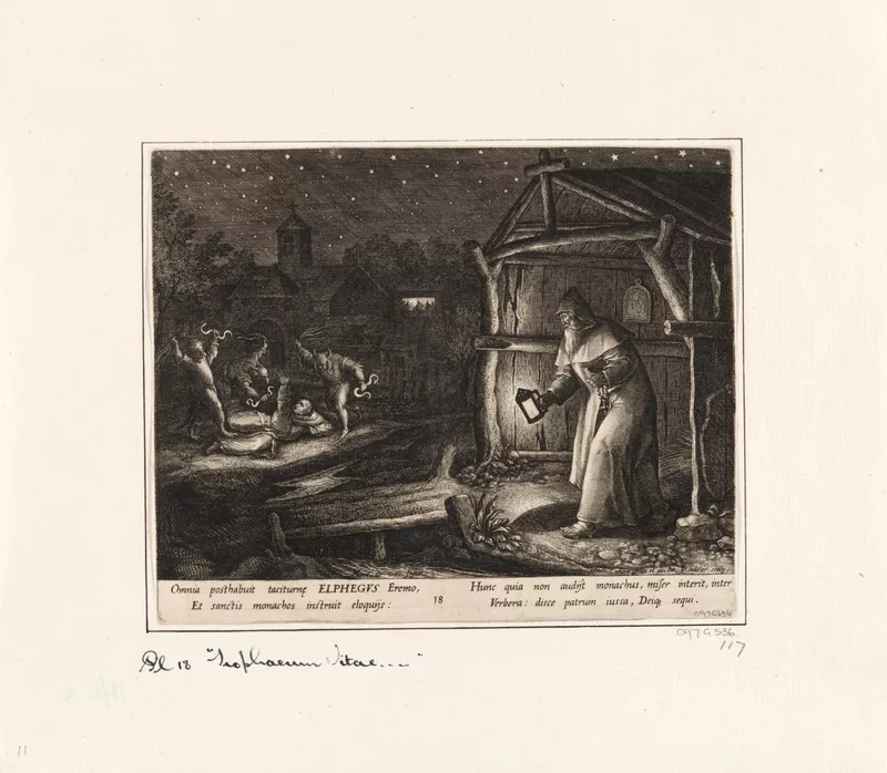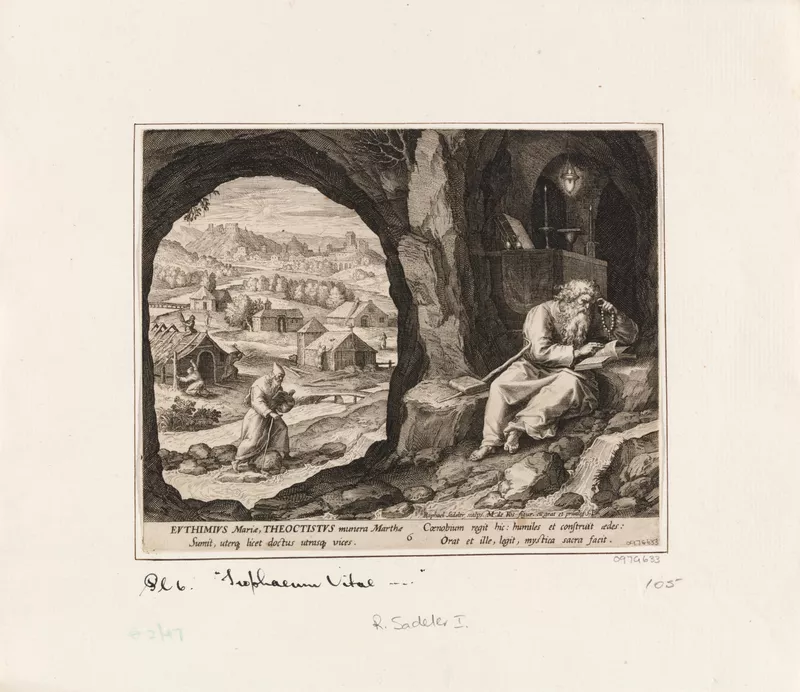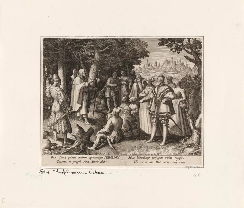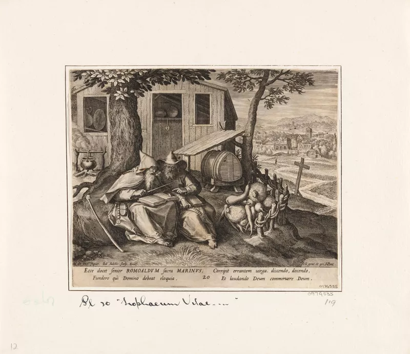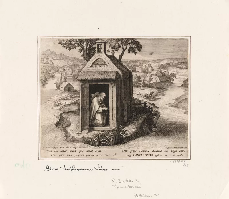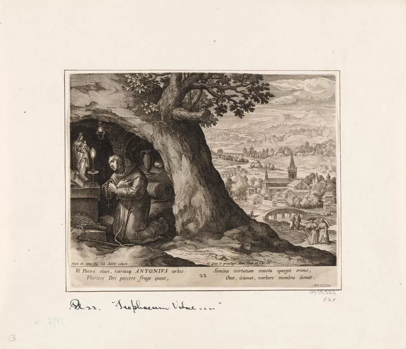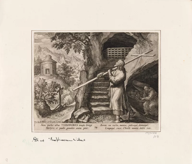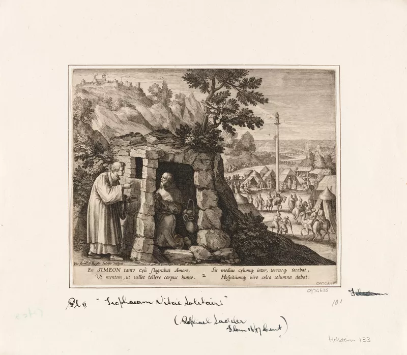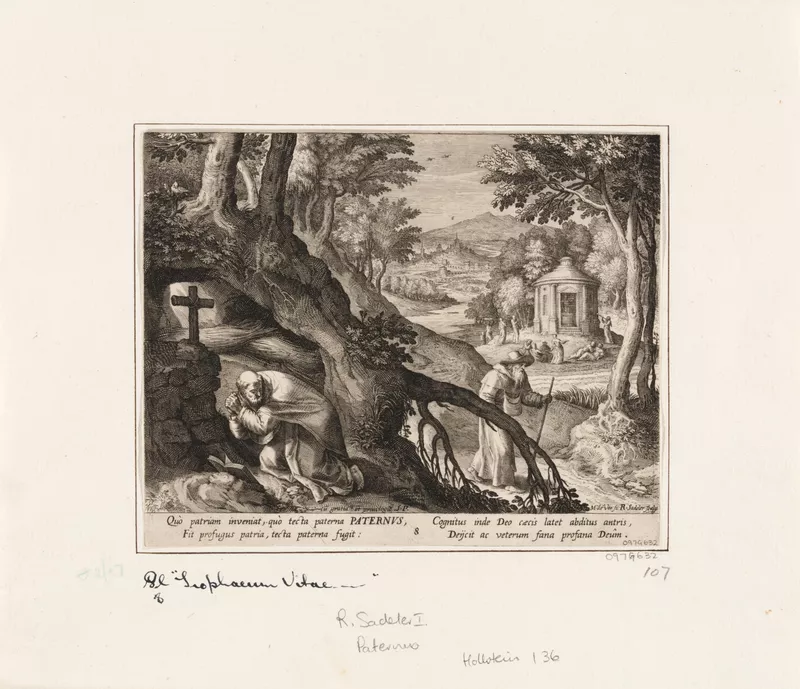 - Signed, engraved in plate, bot. c.l., 'Ioa. Sadeler scalps.".; (on rock) l.r., "M de Vos/ figur". Not dated.