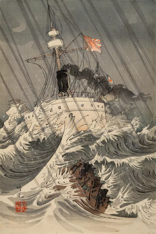 - Signed, printed in block, l.l., black ink "吟光" translated to "Ginkō", artists seal, red ink "下手横好" translated to "Heta no yokozuki".