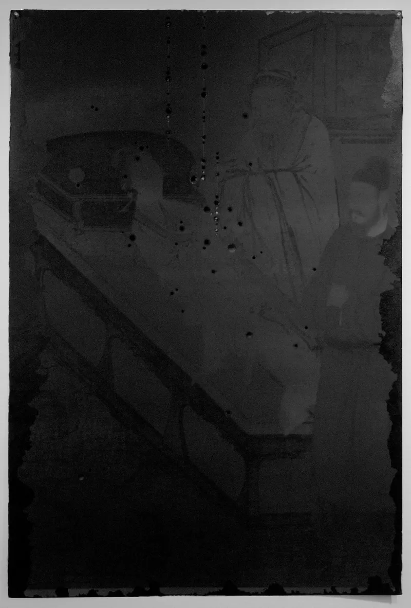 Lindy Lee 1954inkjet print, Chinese ink, pencil, on black paper with puncture holesAccession no: 20193G20