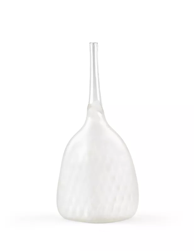 - glass (free-blown into wire mould, s& blasted & acid etched)