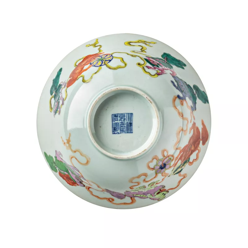 - Inscribed on base, in Chinese, underglaze blue "大清嘉庆年制" translated as "created during Jiaqing period, Qing dynasty".