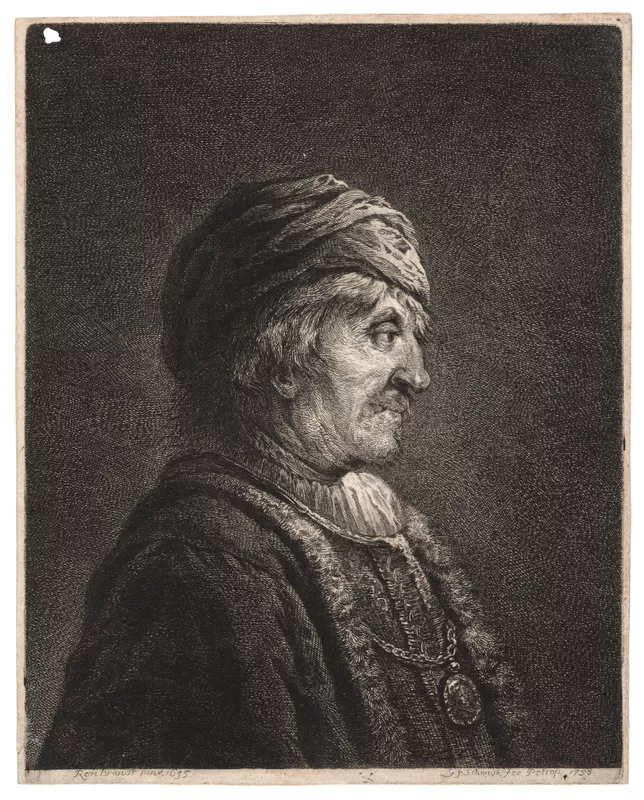 - Signed and dated, engraved in margin of plate, l.r. "G.f.Schmidt, fec Petrop: 1758", l.l. "Rembrandt pinx, 1635",
