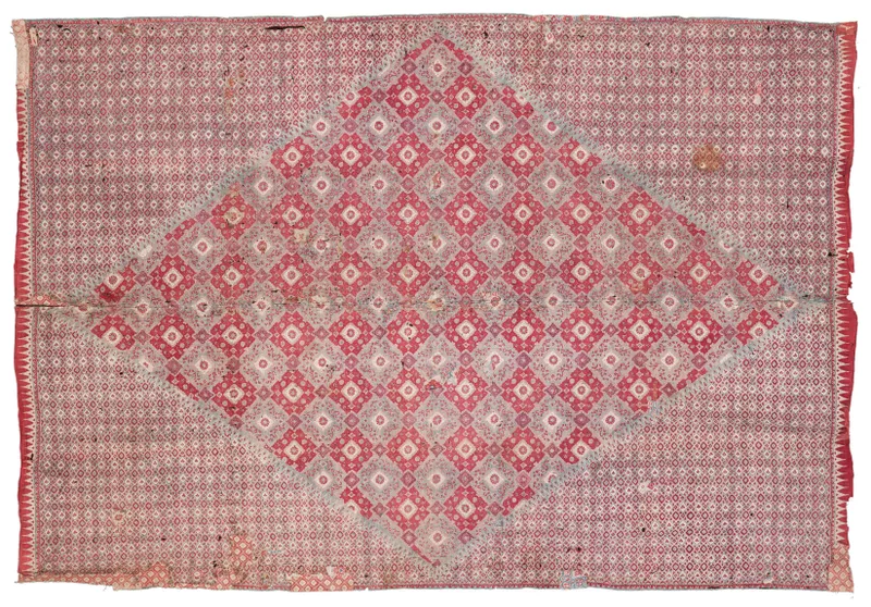 Ceremonial cloth and sacred heirloom (dodot), with interlocking diamond motif in central rhombic field (blumbangan)