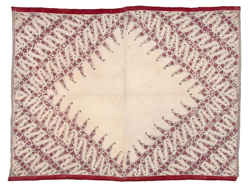 - cotton with mordant dyes, two stitch-joined panels
