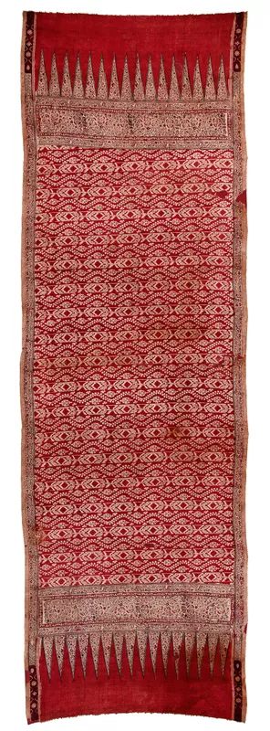 Ceremonial cloth and sacred heirloom, with motif inspired by an Indonesian ikat textile