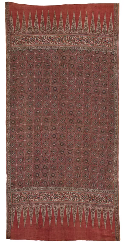 cotton, block-printed on one side, mordant dyes, blue colour pencilled