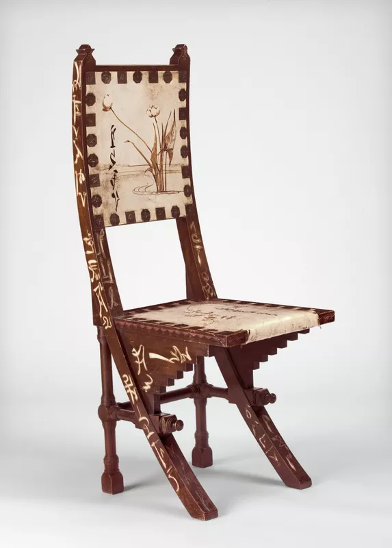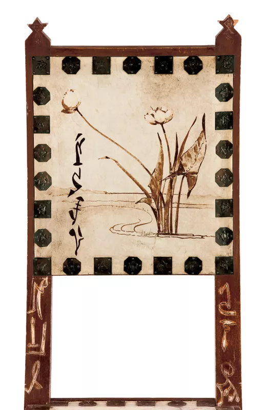- Hardwood (unidentified species), copper, oil paint, vellum