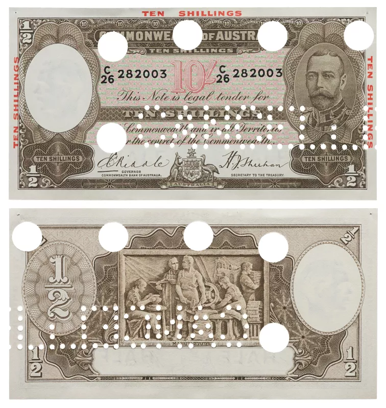 Commonwealth of Australia Riddle & Sheehan cancelled 10 shillings C26 282003