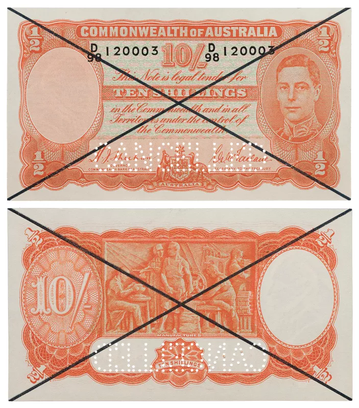 Commonwealth of Australia Sheehan & McFarlane cross speciamn 10 shillings D98 120003