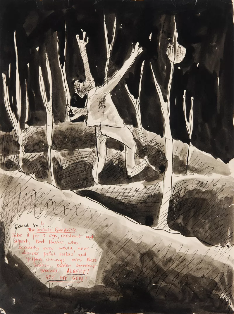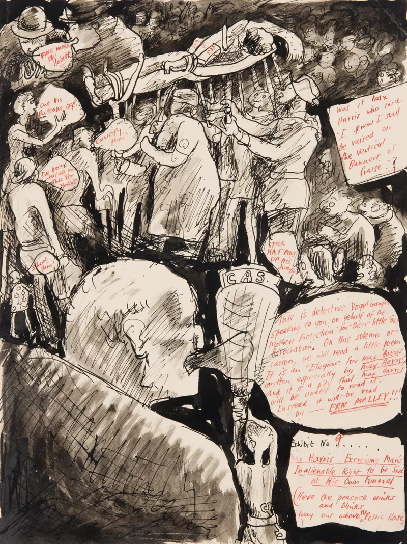 from a series of nine illustrations relating to Max Harris's Trial and the Ern Malley Hoax