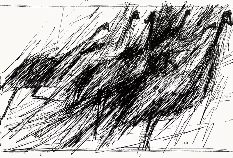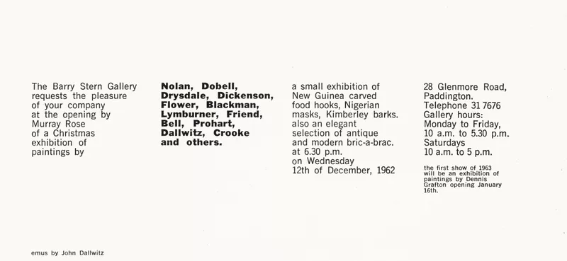 Exhibition invitation with Dallwitz drawing 'Emus'