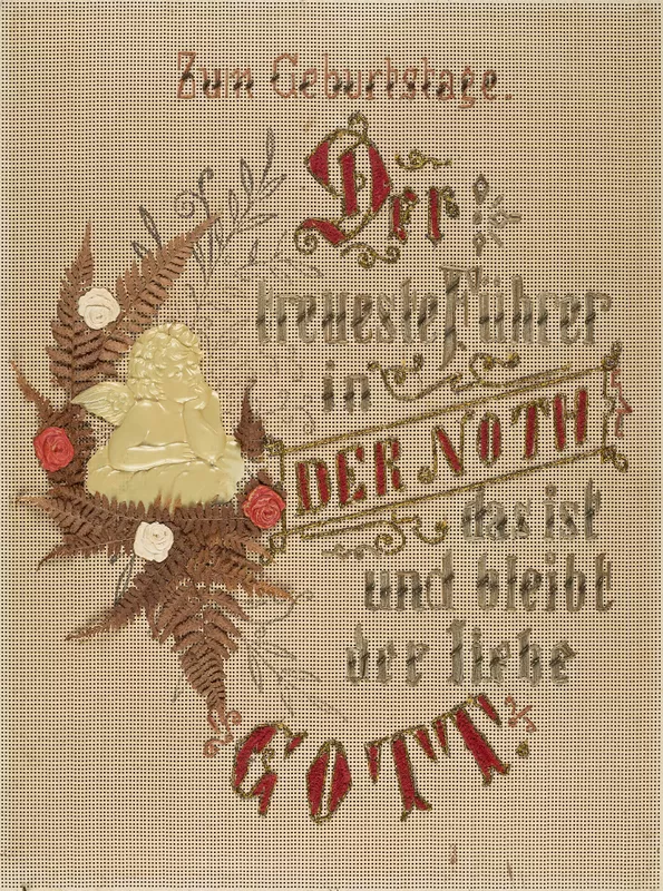 - pressed ferns, cotton & metallic thread, cotton & paper base, original timber frame