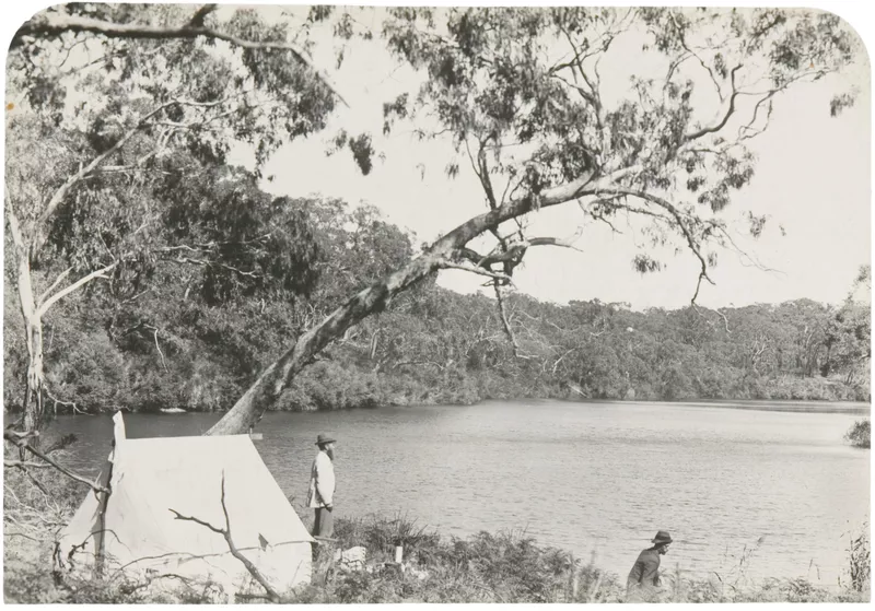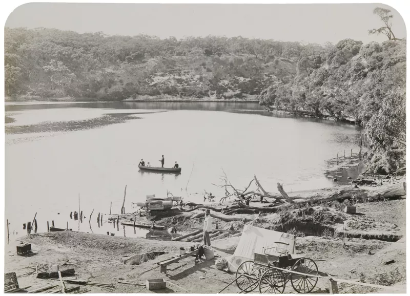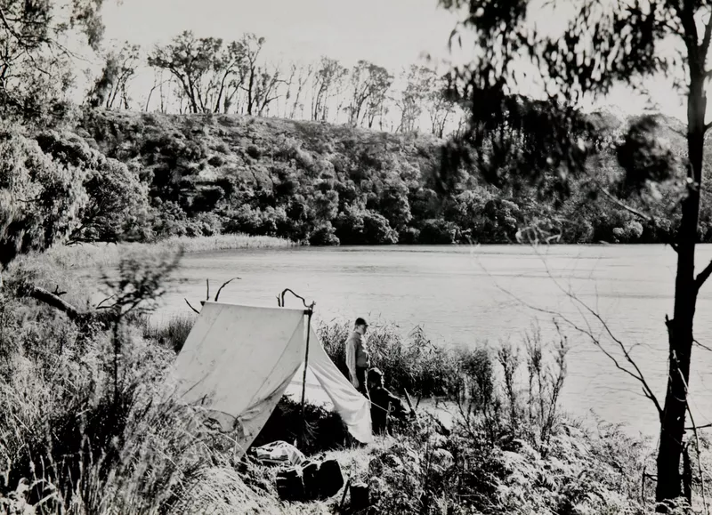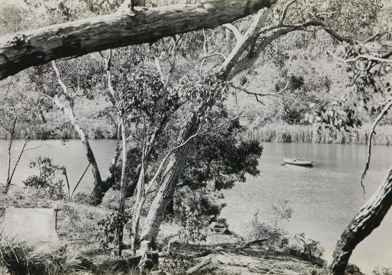 Fred Lester fishing on the Glenelg River, Leslie with net