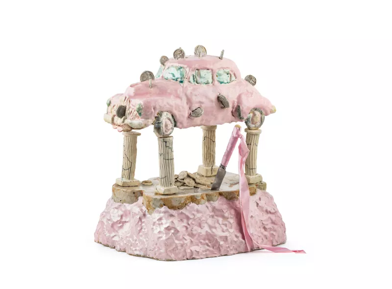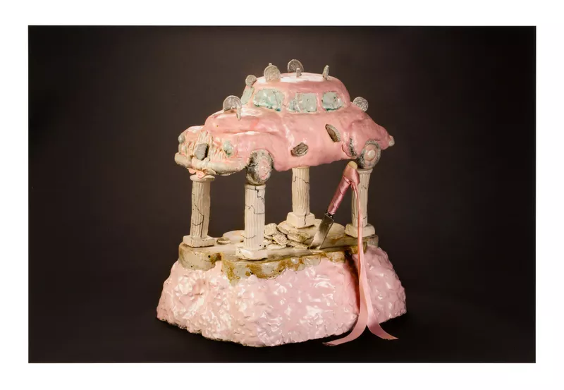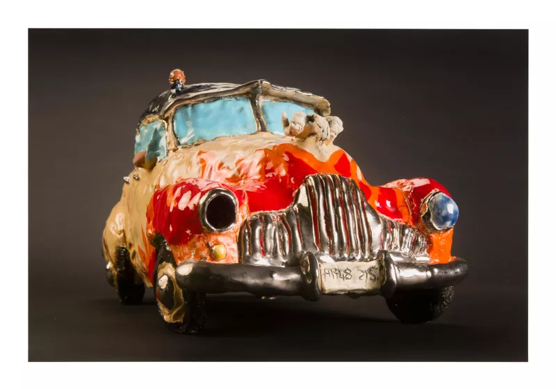 This work relates to Dodd’s internationally acclaimed series of ceramic Holden sculptures (1977) and her avant-garde film (1982), which share the title This Woman is Not a Car. Employing funk, dada and surrealist methods of expression, Dodd blends reality with fantasy in a critique of the culture of masculinity and the role assigned to women in modern Australian society. Today, Dodd continues to employ the potent symbol of Australia’s iconic Holden car to explore notions of national identity, masculinity and femininity.