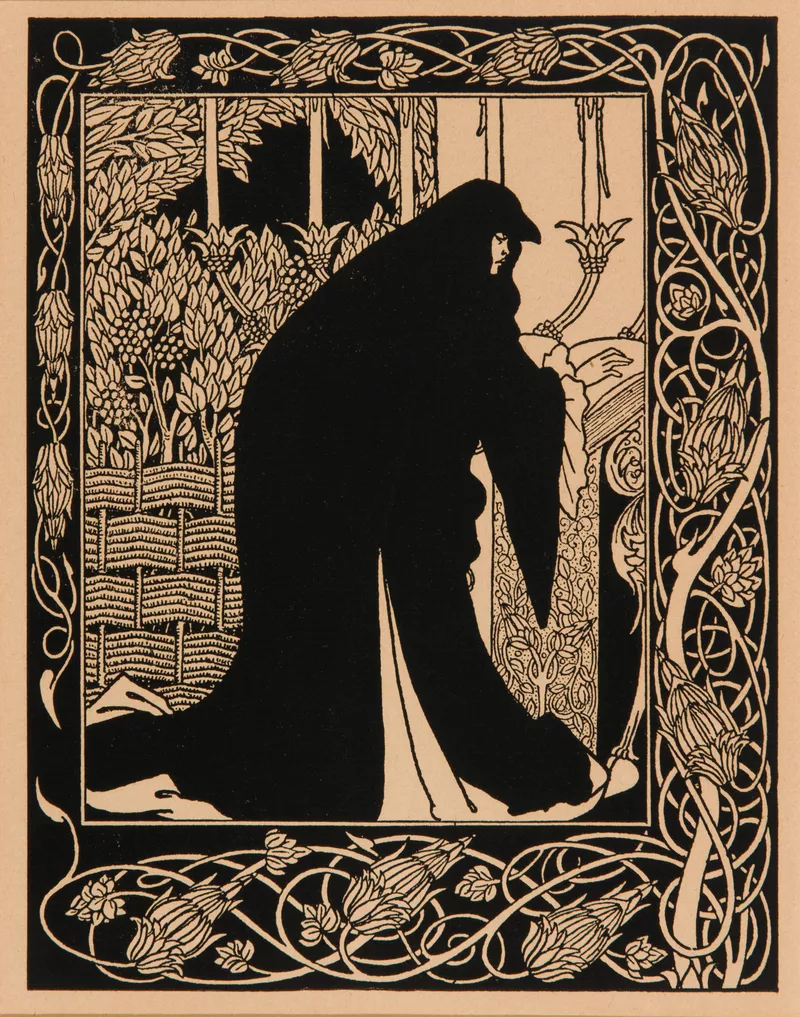 These illustrations by the celebrated artist, Aubrey Beardsley, come from a late nineteenth century edition of Le Morte D’Arthur (The Death of Arthur). Written by Sir Thomas Mallory between the 1450s and 1470s, Mallory’s version of legends surrounding the fabled Camelot, King Arthur and Knights of the Round Table spanned a total of 507 chapters. First published in 1485, the book proved popular but fell into relative obscurity until a revival of interest in medieval literature during the nineteenth century. Like Millais and Tennyson, the stories of King Arthur appealed to Beardsley’s sense of romance and yet, the tales are more depraved than popular interpretations generally allude to.