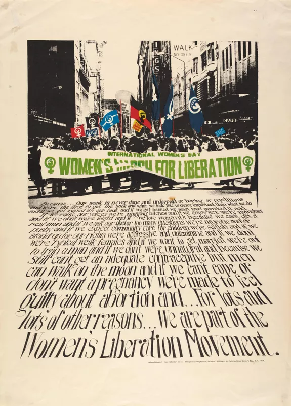 - Signed and dated, printed l.r., "Anne Roberts' photo. Designed by Progressive Printers Alliance for International Women’s Day, S.A., 1979".
