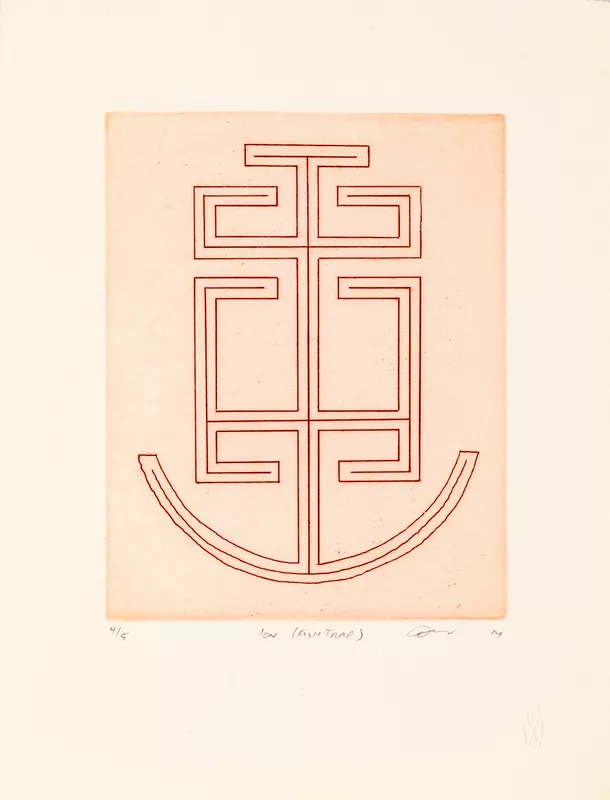 etching, printed in red ink on paper