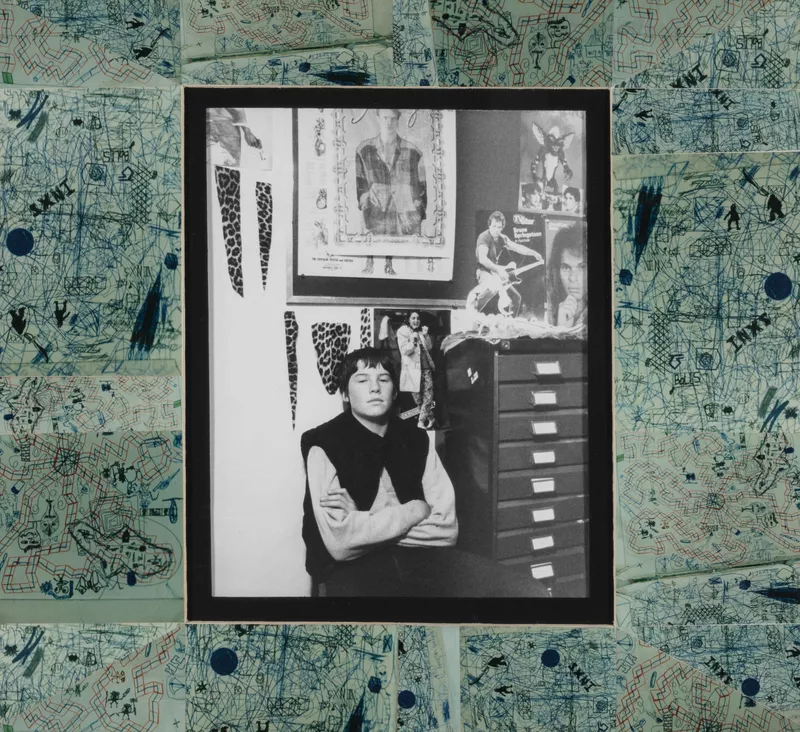 Ann Newmarch’s exhibition One Aspect comprised screenprints and photographs of her children. Individual portraits capture each child’s developing identity, while group photographs reveal their relationships to each other. This photograph is of Newmarch’s first child, Jake Medlin (born 1971). In this work Jake has collaborated with his mother to create the mount for the photograph, choosing to have details of his drawings – his doodles from his maths book – around the edge.
