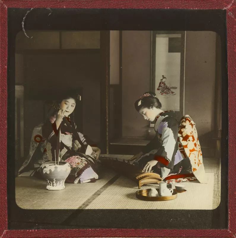 - glass lantern slide, hand coloured