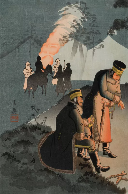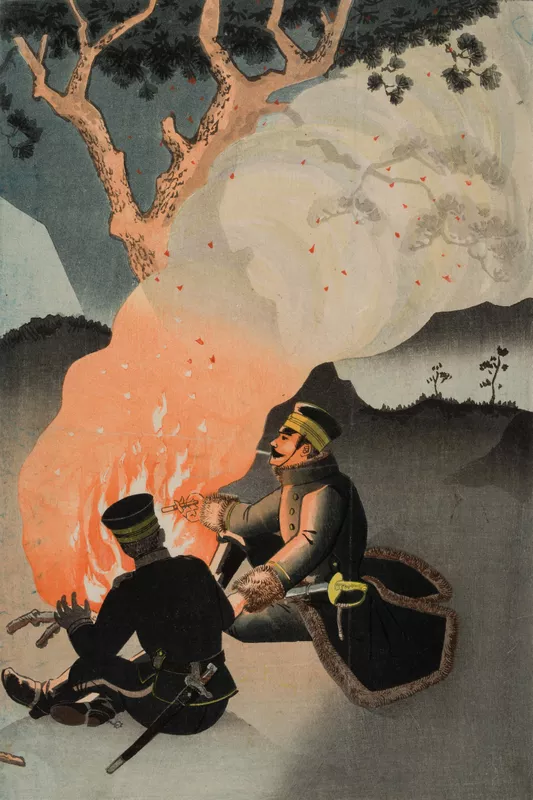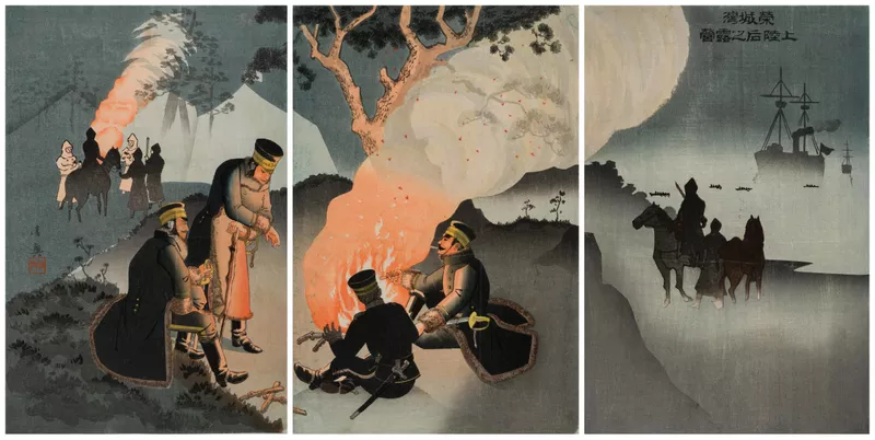 Japanese Soldiers Bivouac after landing at Yungcheng Bay (Eijōwan jōrikugo no roei)