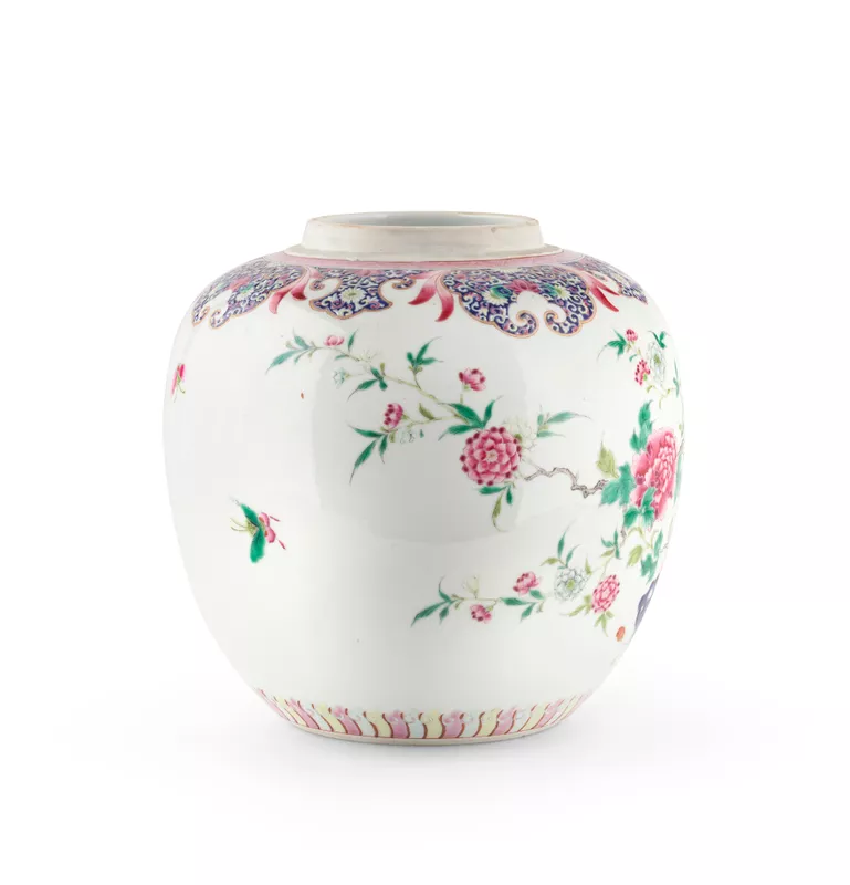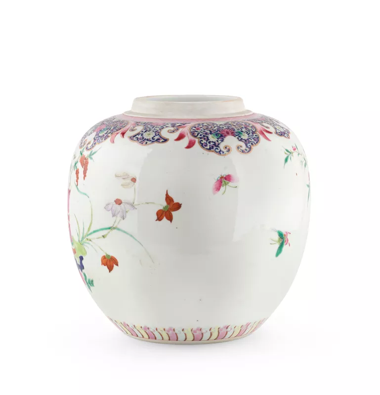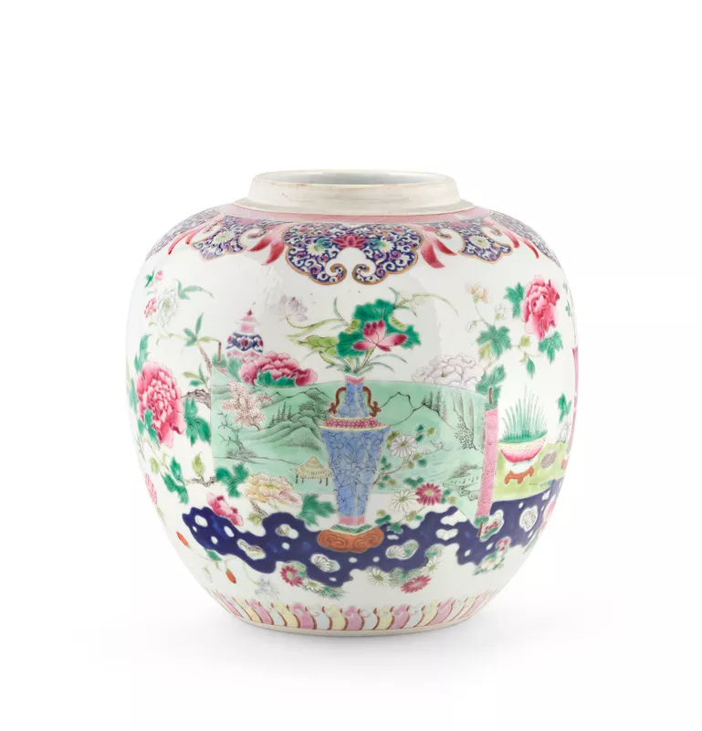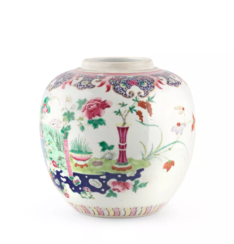 Jar, with flowers and garden scene