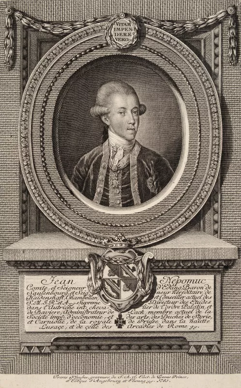 - Signed and dated, engraved in margin of plate, bot.c., "Freres Klauber, graveurs de S.A.S. Elect. de Treves Prince,/ et Eveque d'Augsbourg et Elwang JJ.[? 1781.".]