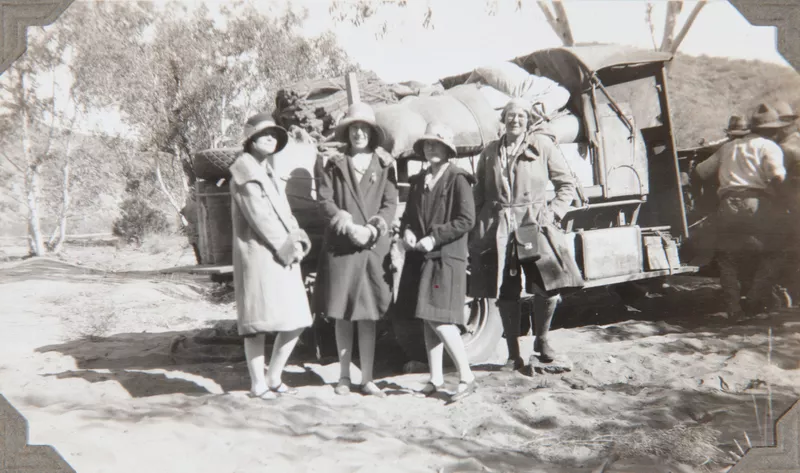 Joyce Waterhouse (far right) and three women by a touring vehicle