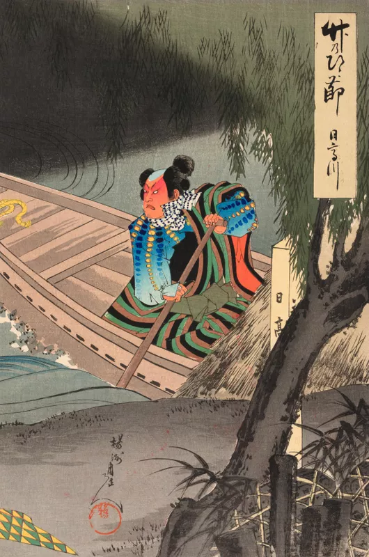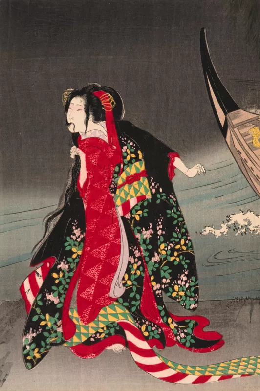 - Signed l. r., black ink, " Yōshū Chikanobu"; Artists seal, l.r., red ink, ‘toshi’.
