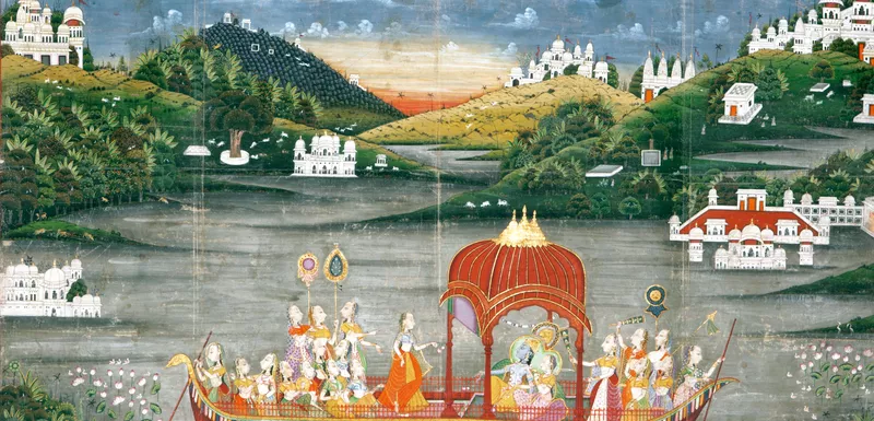 - opaque pigment, gold, silver and mica shellac paint on cotton