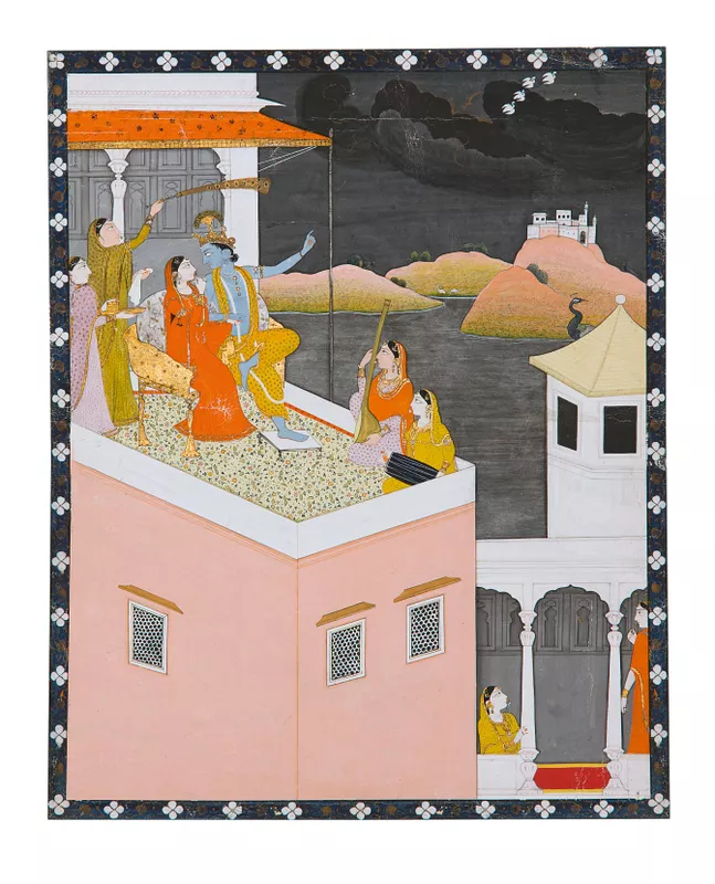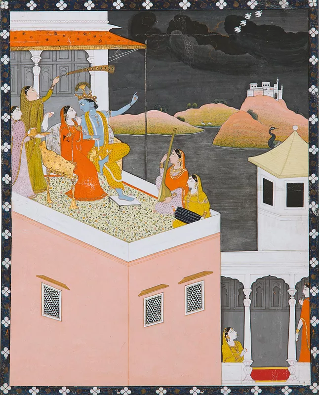 Krishna and Radha watching the rain clouds: Month of Bhadon (August/September)
