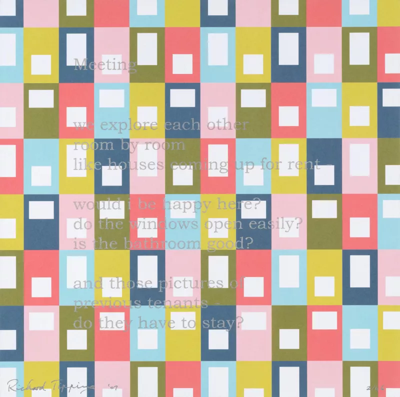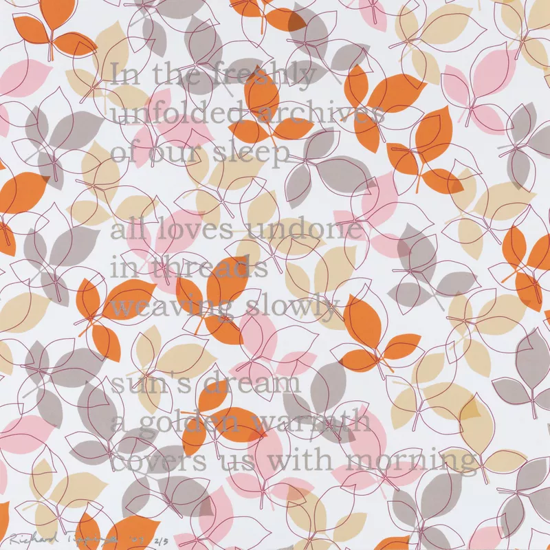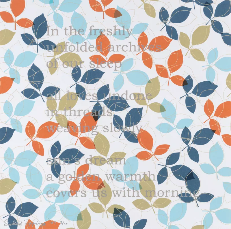 20 colour screenprints on paper unbound print folio with hard slipcase and cover, comprising 21 pages with 20 silkscreen printed poems and frontispiece